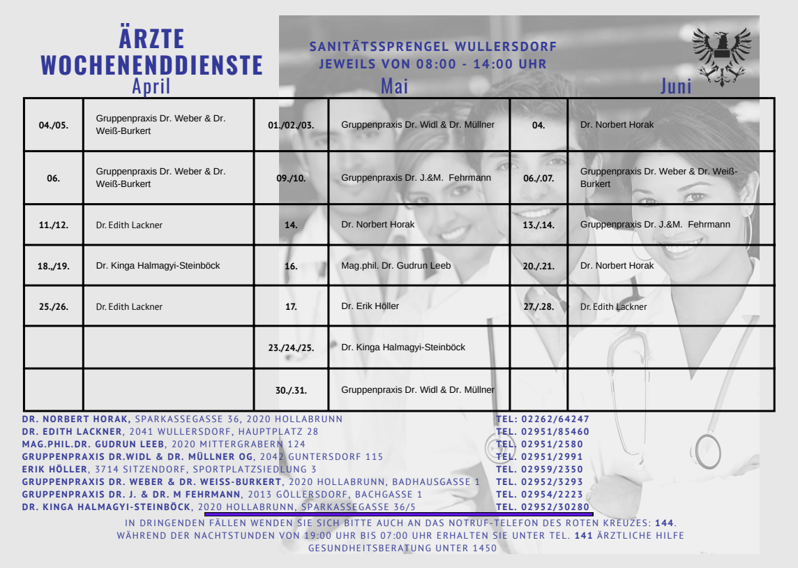 Ein Verzeichnis der Fachärzte finden Sie auf den Seiten der Stadt Hollabrunn!