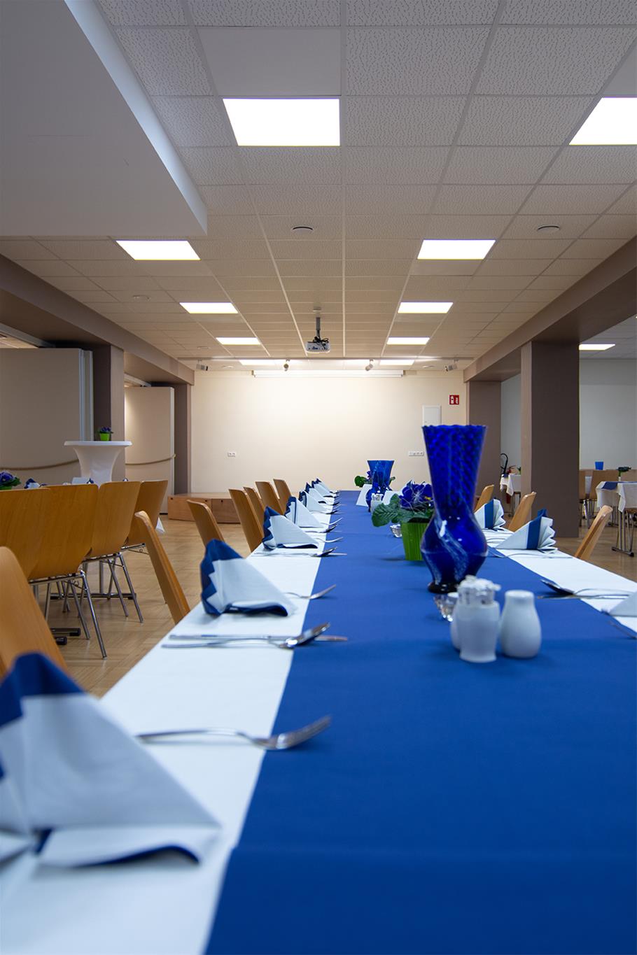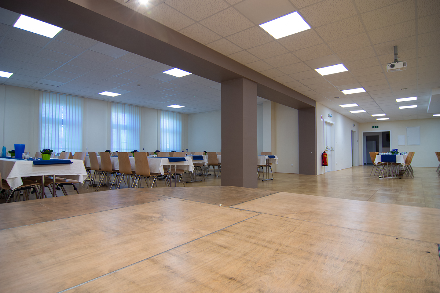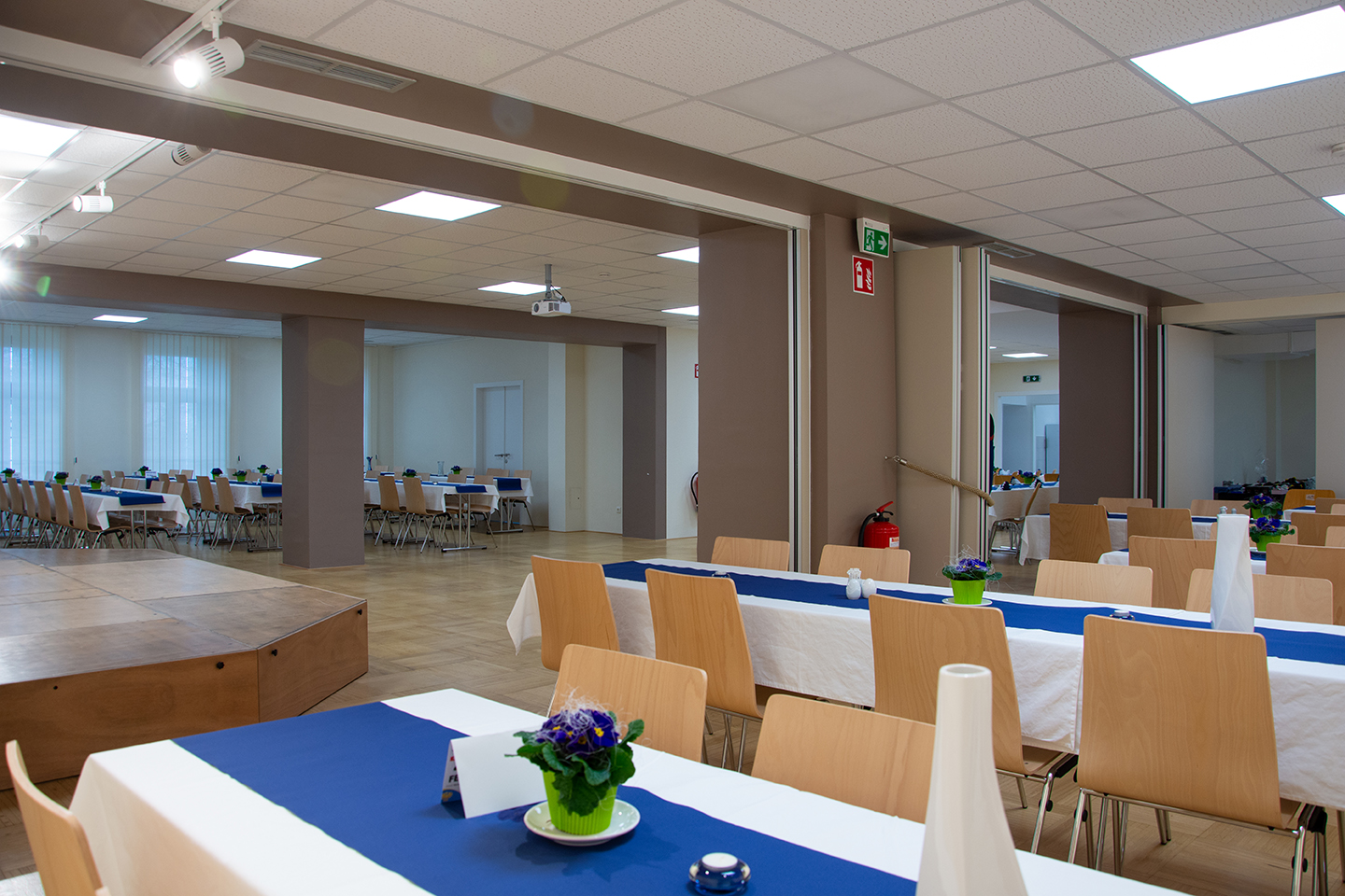 Der Saal kann durch eine Trennwand für verschiedene Veranstaltungen wie Konzerte, Bälle, private Feierlichkeiten (Geburtstage, Hochzeiten, Taufen etc.), Vorträge, Seminare und vielem mehr entsprechend abgeteilt und gestaltet werden.